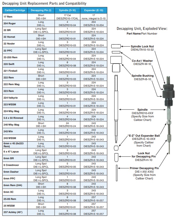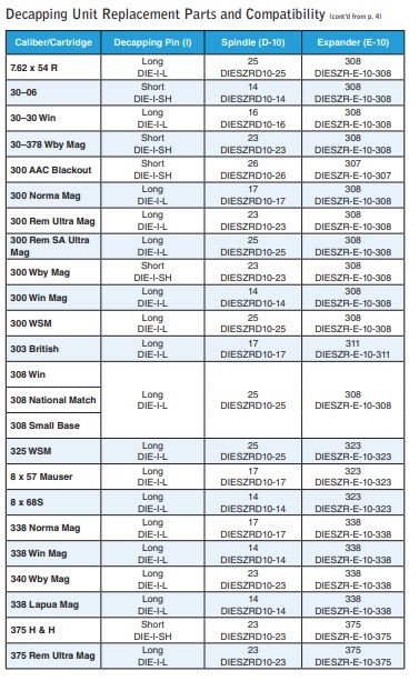 SEE BELOW FOR CALIBRE SIZING CHART