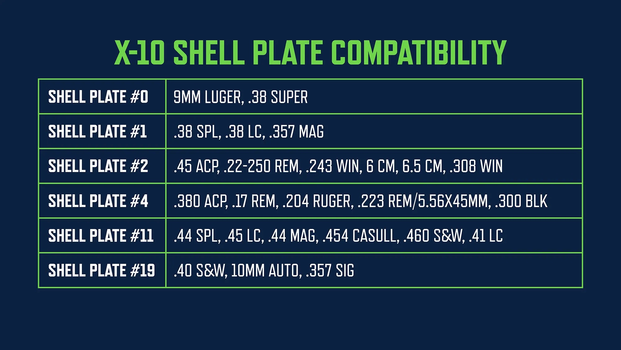 The X-10 includes a case actuated powder measure with a positive reset that guarantees you'll never have to worry about squib loads resulting from a sticking powder measure. When it's time to swap calibers, the X-10's innovative design allows the user the ability to quickly and easily swap out tool heads and shell plates to reload anything from 9mm to .308 length cartridges. The X-10 goes further and offers refined details like a roller handle, integrated LED light, and spring-loaded case locator buttons, which allow easy one-handed case feeding and lever operation, making the X-10 exceptionally smooth and easy to operate. Includes our Frankford Arsenal Case Feeder.The X-10 is the ultimate solution for progressive reloading.
