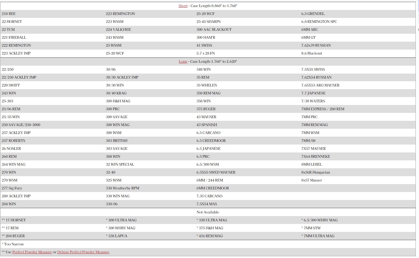 For use with the Lee Auto-Disk, Pro Auto-Disk and Auto-Drum powder measure; and will work with cases 1.760 to 2.620 inches long (223 Rem to 300 Win Mag).