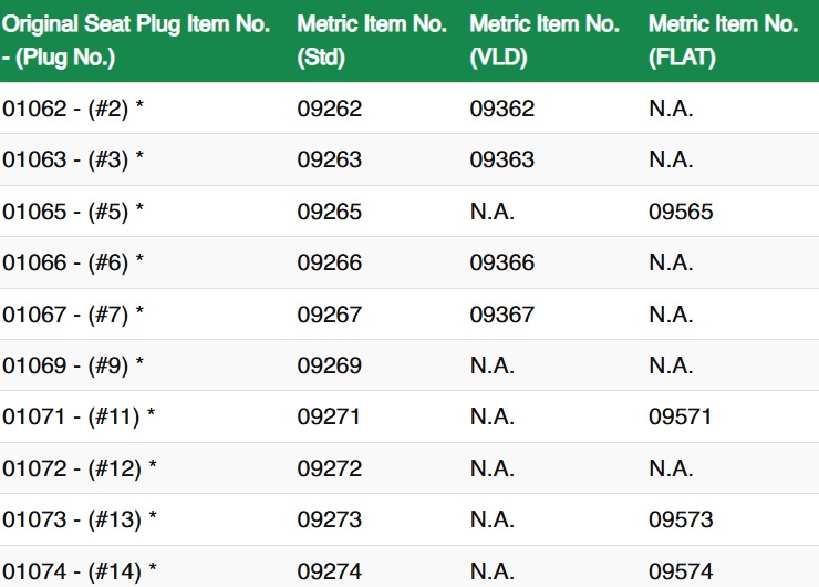 - To find your required top see the top of your seating die to find a number, this is your plug number. This will then corrospond with the chart below and give you either a std/flat or vld top.