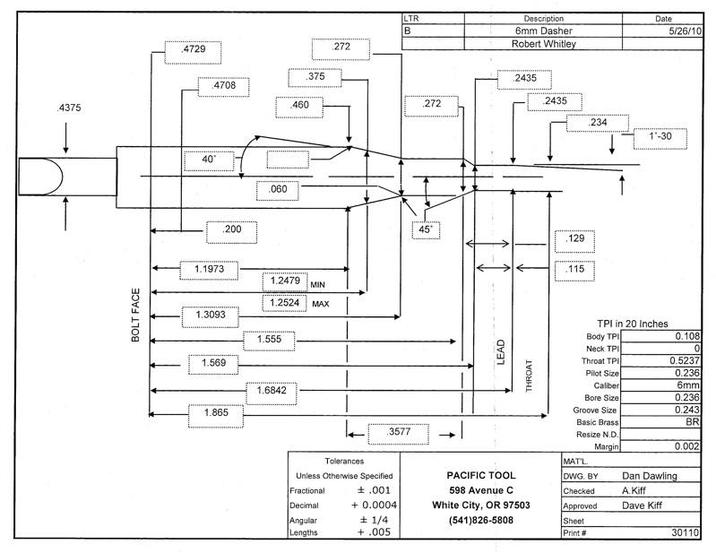 Featuring a 40-degree Ackley-type shoulder and 10 percent more case capacity over the parent 6mm BR case, the 6mm Dasher has been used to set records in the 600 and 1,000-yard benchrest community, and has become a favorite among competitors in the Precision Rifle Series as well.
